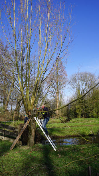 Deze ochtend hebben we de wilgen op het weiland in Park huis te Kinderdijk geknot.